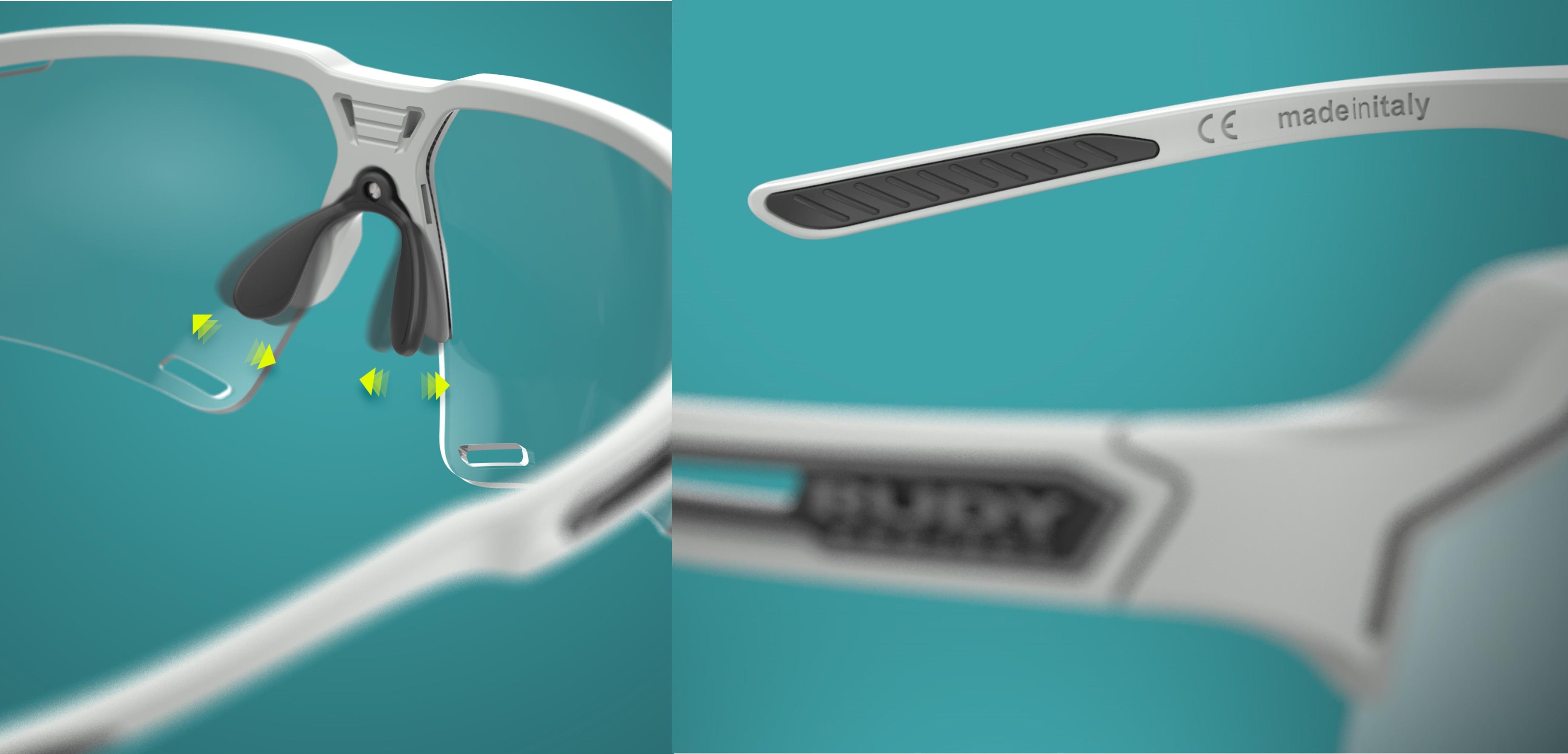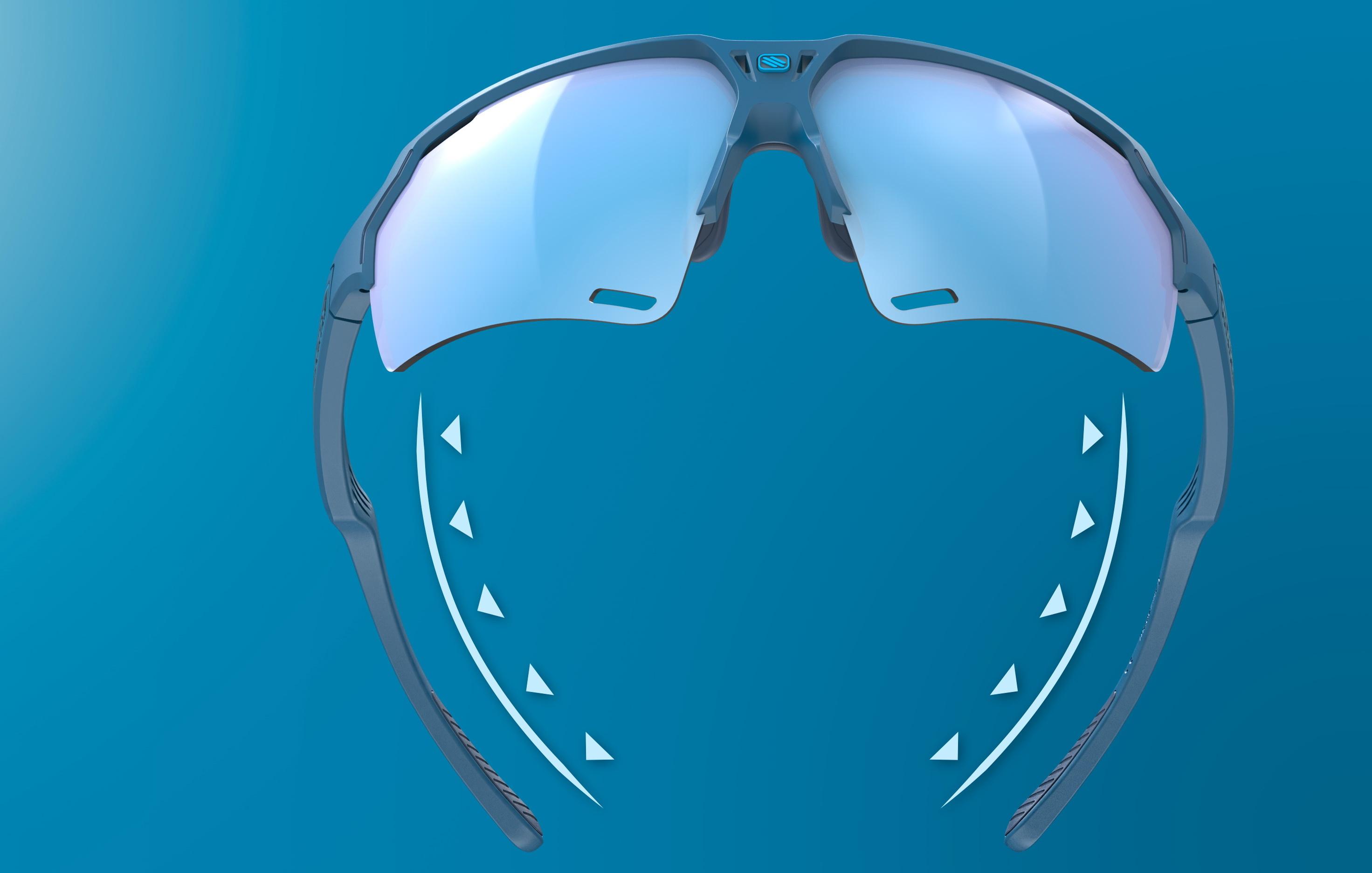 A saját fejlesztésű PowerFlow szellőzési technológiánk alkalmazása révén a DELTABEAT kiváló szellőzést biztosít - a lencsékben, keretben és szárakban specifikusan elhelyezett nyílások segítségével - melynek köszönhetően rendkívüli módon csökken a lencsék párásodásának esélye.