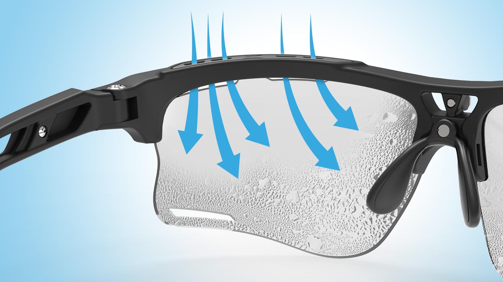 Kombinálva az egyedülálló, saját fejlesztésű Vent Controller és a Vertical Power Flow szellőzési rendszereinket, megalkottuk a valaha volt leghatékonyabb szellőzést – biztosítva a tökéletes párásodás mentességet és a mindig komfortos érzetet. A Keyblade szemüvegen így nem csak a keret elején és a lencséken találunk szellőzőnyílásokat, de a keret felső részén is, melyek összességében optimalizálják a légáramlást.